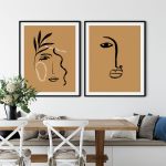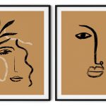 Wall Art | Set of 2 brushstroke drawing face figure abstract | Small to XXXL Sizes • 50+ Framing Styles • Non Toxic