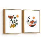 Wall Art | Set of 2 circle boho botanical leaves abstract | Small to XXXL Sizes • 50+ Framing Styles • Non Toxic