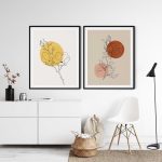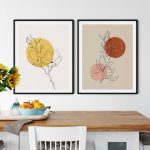 Set of 2 circle line drawing flowers - Wall Art, Hanging Wall Decor, Home Decor - BestOfBharat
