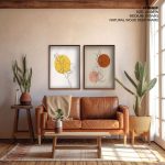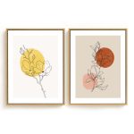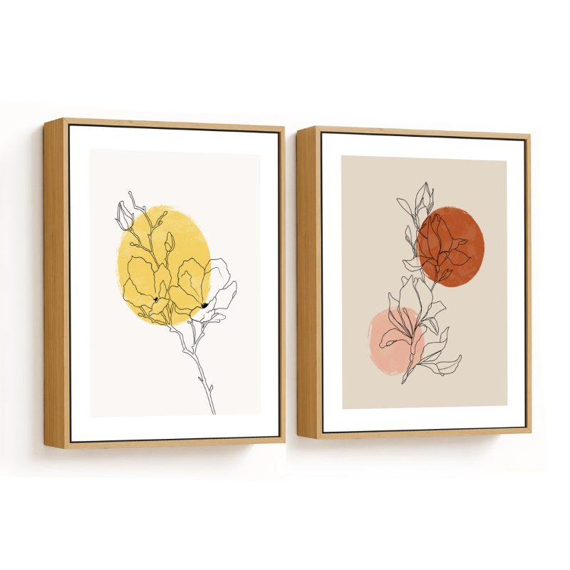 Wall Art | Set of 2 circle line drawing flowers | Small to XXXL Sizes • 50+ Framing Styles • Non Toxic