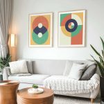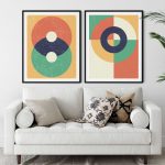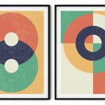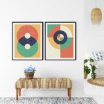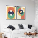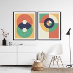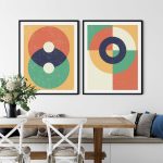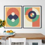 Wall Art | Set of 2 colorful abstract geometric circle shapes | Small to XXXL Sizes • 50+ Framing Styles • Non Toxic
