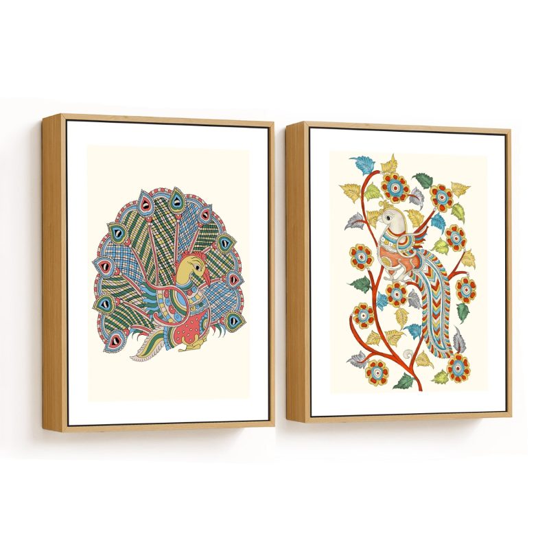 Wall Decor | Set of 2 Combination of kalamkari and madhubani | Custom Size & Frame • Ready to Hang • Made in India • Eco-Friendly