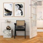 Wall Decor | Set of 2 contemporary brushstrokes black white golden abstract painting | Custom Size & Frame • Ready to Hang • Made in India • Eco-Friendly