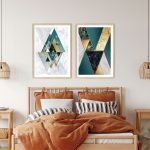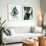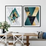 Framed Art | Set of 2 geometrical green marble abstract | 50+ Frame Styles • Museum Quality • Made in India