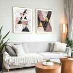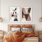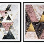 Wall Decor | Set of 2 geometrical pink marble abstract | Custom Size & Frame • Ready to Hang • Made in India • Eco-Friendly