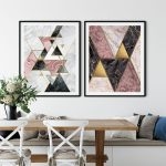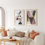 Wall Decor | Set of 2 geometrical pink marble abstract | Custom Size & Frame • Ready to Hang • Made in India • Eco-Friendly