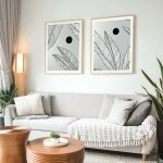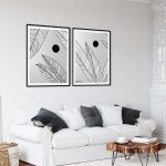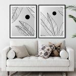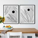 Wall Art | Set of 2 grayscale line drawing leaves #2 | Small to XXXL Sizes • 50+ Framing Styles • Non Toxic