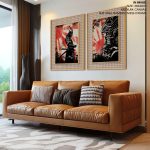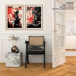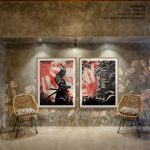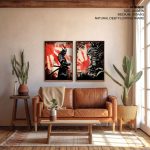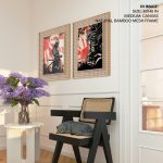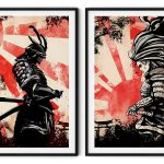 Set of 2 japanese silhouette samurai fighters - Wall Art, Hanging Wall Decor, Home Decor - BestOfBharat
