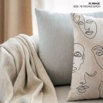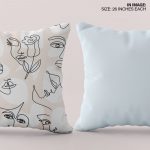 Set of 2 line drawing women faces pattern cushion cover