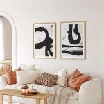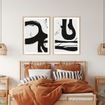 Framed Art | Set of 2 mingled black brushstroke drawing abstract | 50+ Frame Styles • Museum Quality • Made in India