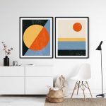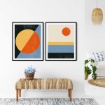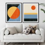Framed Art | Set of 2 minimalist geometric abstract | 50+ Frame Styles • Museum Quality • Made in India