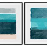 Wall Art | Set of 2 minimalistic rothko style blue watercolor abstract | Small to XXXL Sizes • 50+ Framing Styles • Non Toxic