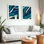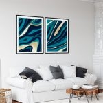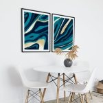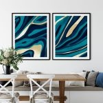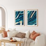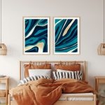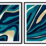 Wall Decor | Set of 2 modern blue golden curlicue | Custom Size & Frame • Ready to Hang • Made in India • Eco-Friendly