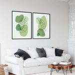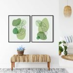 Set of 2 monstera line drawing banana leaves - Wall Art Decor, Framed Painting, Home Decor - BestOfBharat
