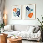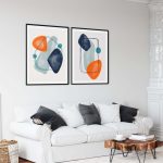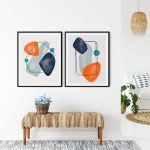 Set of 2 orange blue shapes abstract - Wall Art, Hanging Wall Decor, Home Decor - BestOfBharat