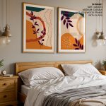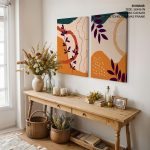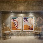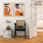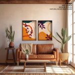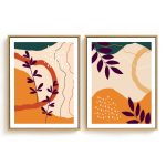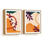 Wall Art | Set of 2 orange burnt abstract botanical | Small to XXXL Sizes • 50+ Framing Styles • Non Toxic