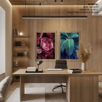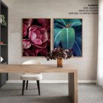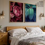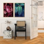Set of 2 peony flower and leaf - Wall Art Decor, Framed Painting, Home Decor - BestOfBharat