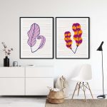 Wall Decor | Set of 2 pink and red abstract leaves | Custom Size & Frame • Ready to Hang • Made in India • Eco-Friendly