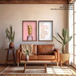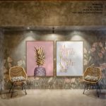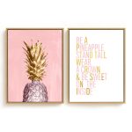 Set of 2 pink pineaplle - Wall Art Decor, Framed Painting, Home Decor - BestOfBharat