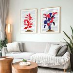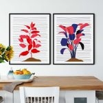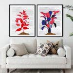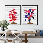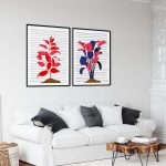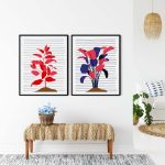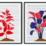 Wall Art | Set of 2 red abstract plants botanical | Small to XXXL Sizes • 50+ Framing Styles • Non Toxic