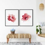 Framed Art | Set of 2 red pink beautiful flowers | 50+ Frame Styles • Museum Quality • Made in India
