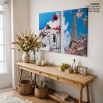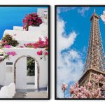 Set of 2 Santorini and Eiffel landscape - Wall Art, Hanging Wall Decor, Home Decor - BestOfBharat