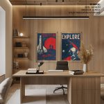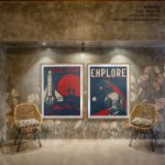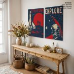 Set of 2 space rocket astronaut red landscape - Wall Art, Hanging Wall Decor, Home Decor - BestOfBharat