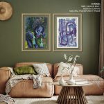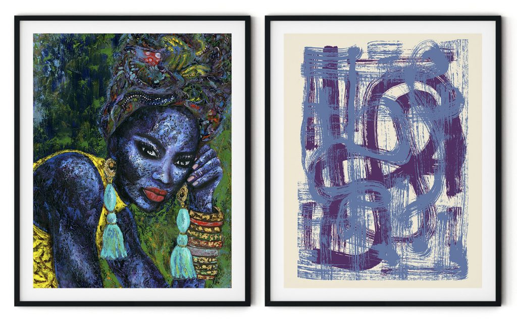 Framed Art | Set of 2 thoughtful abstract woman | 50+ Frame Styles • Museum Quality • Made in India