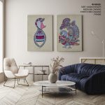 - Material: You can choose between different print mediums (Glicee paper or Canvas) and 40+ framing options that you can see on the website. Any order above 18x24 inches is processed in pinewood since synthetic wood is not able to bear its load. Wherever applicable, acrylic glass is used instead of normal glass, for its ease of handling and recyclability.