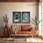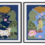 Wall Art | Set of 2 traditional vintage cow and shrinathji | Small to XXXL Sizes • 50+ Framing Styles • Non Toxic