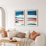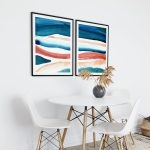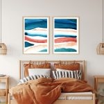 Wall Art | Set of 2 watercolor aquamarine burnt abstract | Small to XXXL Sizes • 50+ Framing Styles • Non Toxic