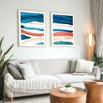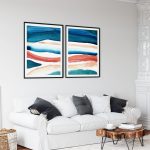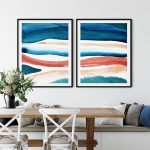 Set of 2 watercolor aquamarine burnt abstract - Wall Art Decor, Framed Painting, Home Decor - BestOfBharat