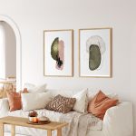 Set of 2 watercolor green golden viens abstract - Wall Art, Hanging Wall Decor, Home Decor - BestOfBharat