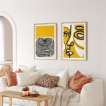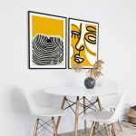Set of 2 yellow line drawing face figure abstract - Wall Art Decor, Framed Painting, Home Decor - BestOfBharat