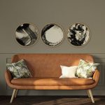 Set of 3 abstract black brushstroke - Circular Wall Art, Round Wall Decor - BestOfBharat