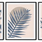 Set of 3 abstract boho sun blue leaves botanical