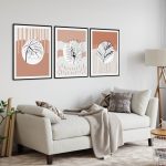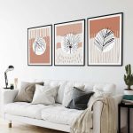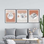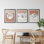 Set of 3 abstract circle black line botanical