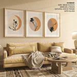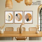 Wall Decor | Set of 3 abstract circle botanical | Custom Size & Frame • Ready to Hang • Made in India • Eco-Friendly
