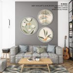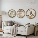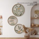 Set of 3 abstract flower and plant - Circular Wall Art, Round Wall Decor - BestOfBharat