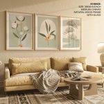 Set of 3 abstract flower and plant - Wall Art Decor, Framed Painting, Home Decor - BestOfBharat