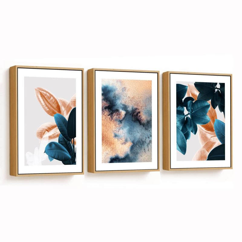 Framed Art | Set of 3 abstract rubber leaves botanical | 50+ Frame Styles • Museum Quality • Made in India