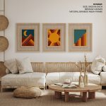 - Material: You can choose between different print mediums (Glicee paper or Canvas) and 40+ framing options that you can see on the website. Any order above 18x24 inches is processed in pinewood since synthetic wood is not able to bear its load. Wherever applicable, acrylic glass is used instead of normal glass, for its ease of handling and recyclability.