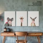 Wall Art | Set of 3 animal with bubble gum | Small to XXXL Sizes • 50+ Framing Styles • Non Toxic
