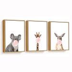 Wall Art | Set of 3 animal with bubble gum | Small to XXXL Sizes • 50+ Framing Styles • Non Toxic