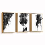 Wall Art | Set of 3 black fashionable women abstract | Small to XXXL Sizes • 50+ Framing Styles • Non Toxic