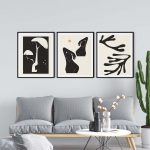 Set of 3 black figures and shapes minimalist abstract - Wall Art Decor, Framed Painting, Home Decor - BestOfBharat