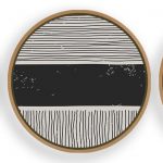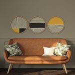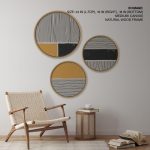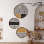 Set of 3 black yellow trendy line abstract - Circular Wall Art, Round Wall Decor - BestOfBharat