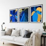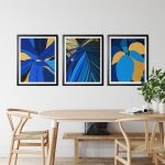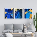 Framed Art | Set of 3 blue yellow abstract botanical | 50+ Frame Styles • Museum Quality • Made in India