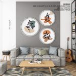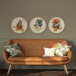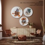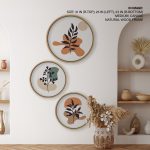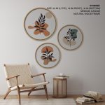 Set of 3 Bohemian Minimal Leaves - Circular Wooden Frames - Wall Art, Hanging Wall Decor, Home Decor - BestOfBharat