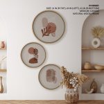 Set of 3 Boho Botanical Abstract - Circular Wooden Frames - Wall Art, Hanging Wall Decor, Home Decor - BestOfBharat